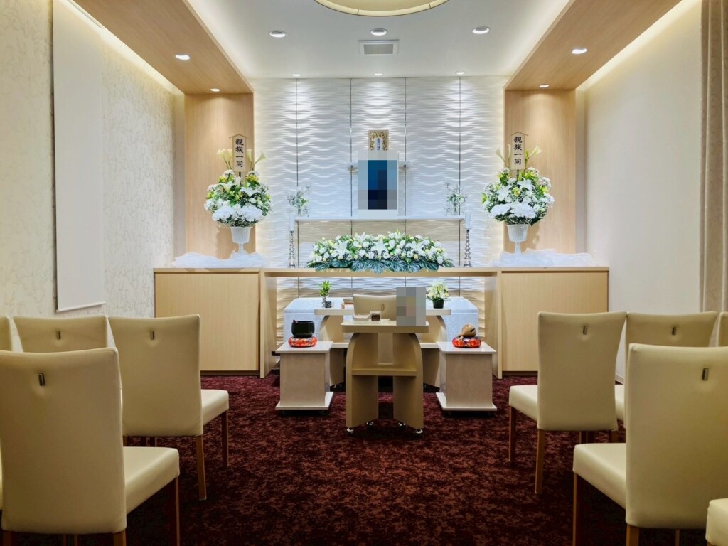 堺市立斎場の式場を利用して葬儀を行う場合、お通夜から繰り上げ初七日法要までを同施設で行えます。式場横に併設された親族控室ではご宿泊もしていただけます。通夜日に式場へ来ていただき、翌日の葬儀、お骨上げ、繰り上げ初七日法要まで、すべての儀式を建物から出ることなく行う事ができます。