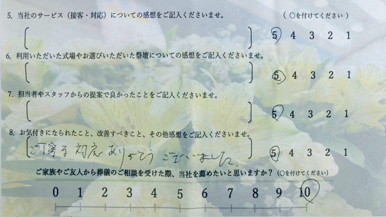 ご家族のご希望や故人様のご希望を丁寧にお伺いする事が出来るため、満足度の高いお葬式を行うことができます。私たちスタッフがご家族にとって最適な葬儀をご提案いたします。