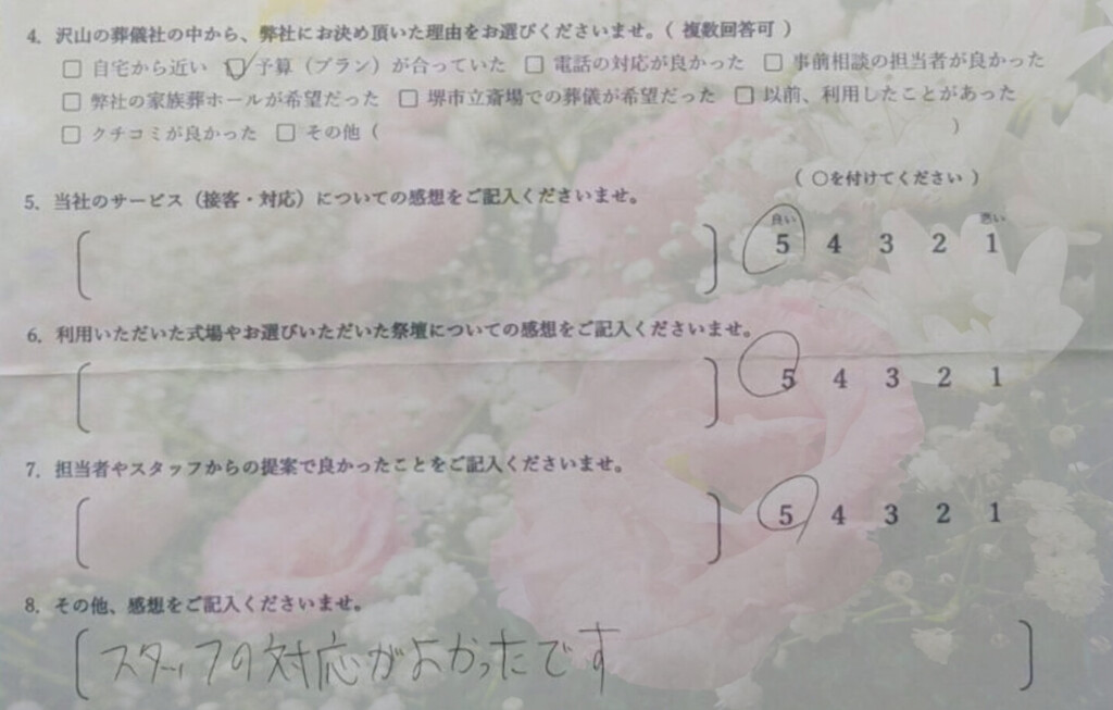 Q:沢山の葬儀社の中から、弊社にお決め頂いた理由をお選びくださいませ。