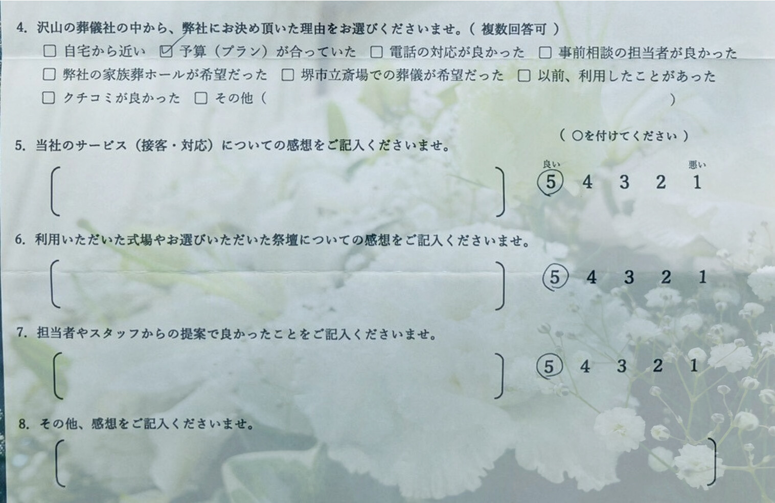 堺市立斎場をご利用頂いての家族葬をご希望されているとの事でした。