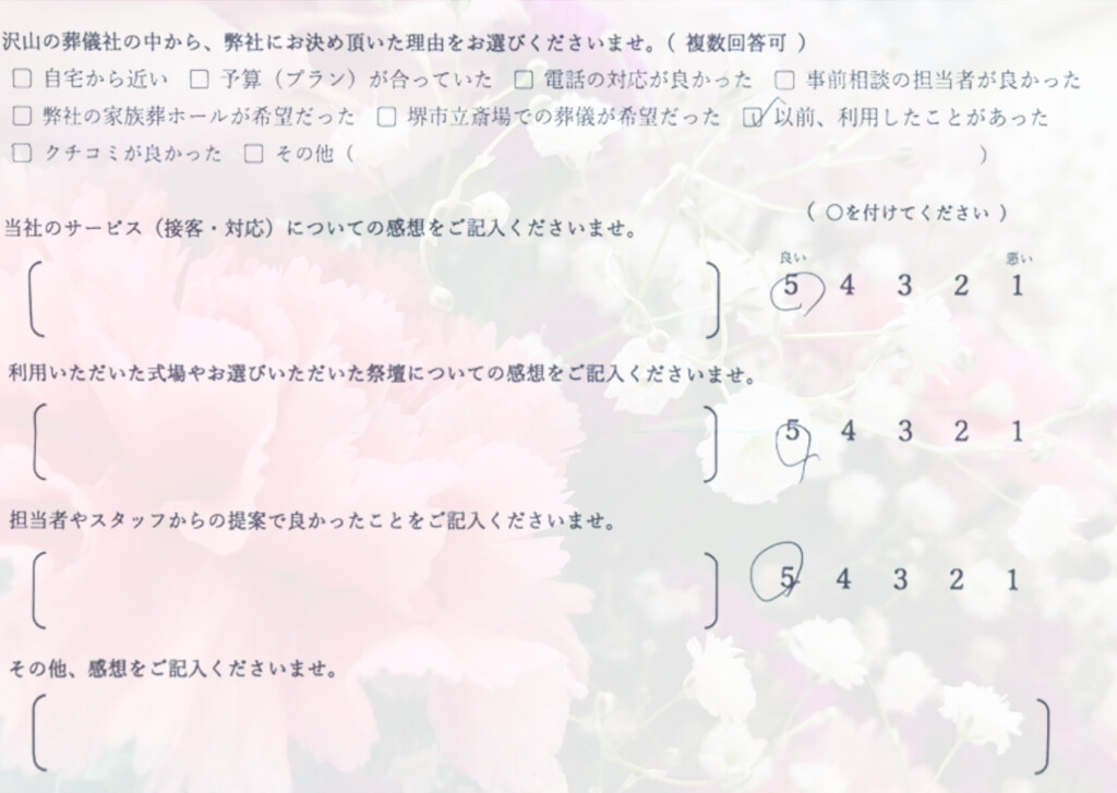 Q:沢山の葬儀社の中から、弊社にお決め頂いた理由をお選びくださいませ。