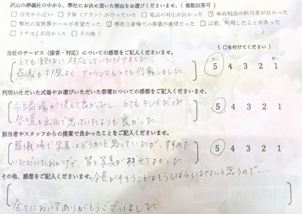 ☑堺市立斎場での葬儀が希望だった