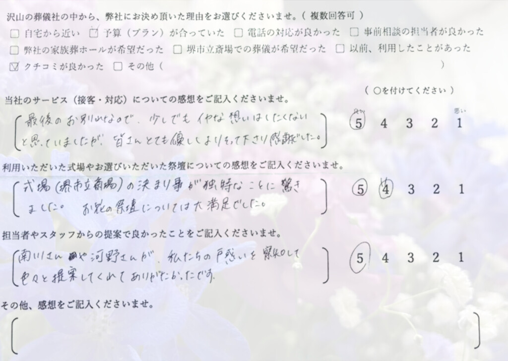 最後のお別れなので、少しでもイヤな想いはしたくないと思っていましたが、皆さんとても優しくよりそって下さり感謝でした。
