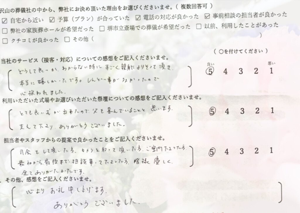 Q:沢山の葬儀社の中から、弊社にお決め頂いた理由をお選びくださいませ。