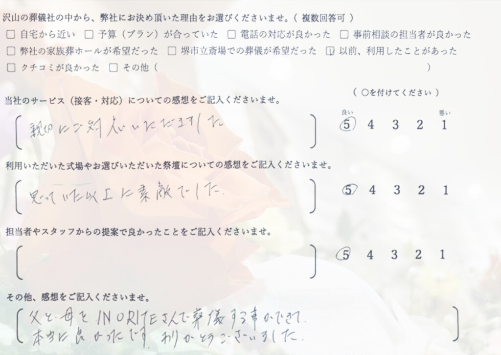 父と母をINORITEさんで葬儀する事ができて本当に良かったです。