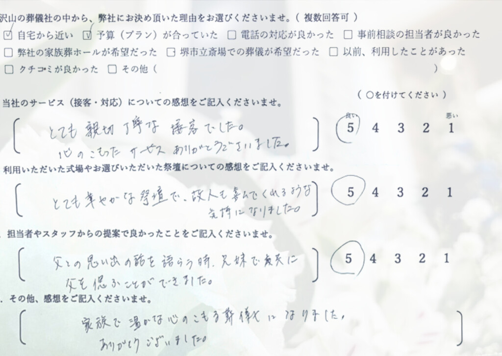 しかし、家族葬イノリテ堺斎場前ホールでの葬儀をご希望でございましたので、