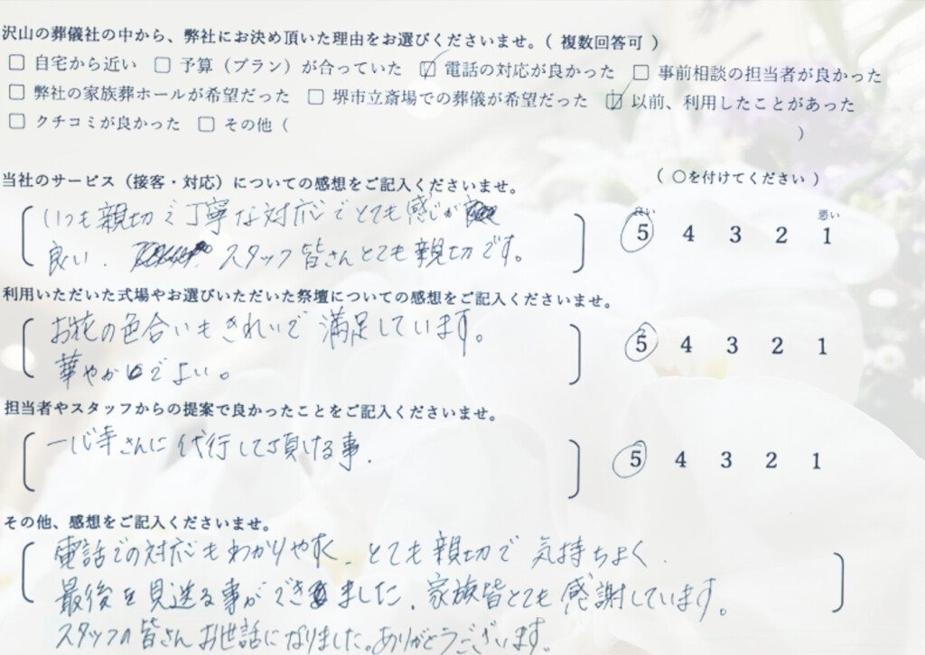 Q:沢山の葬儀社の中から、弊社にお決め頂いた理由をお選びくださいませ。