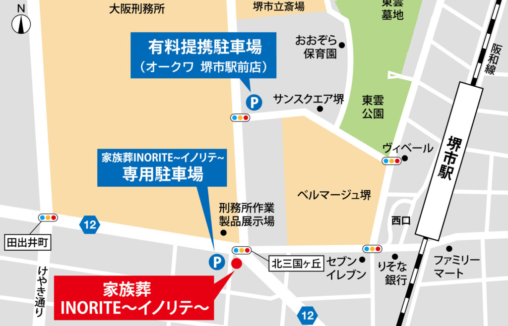是非堺市立斎場より徒歩5分の場所にある「ベルマージュさかいお葬式の相談窓口」までお越しください。