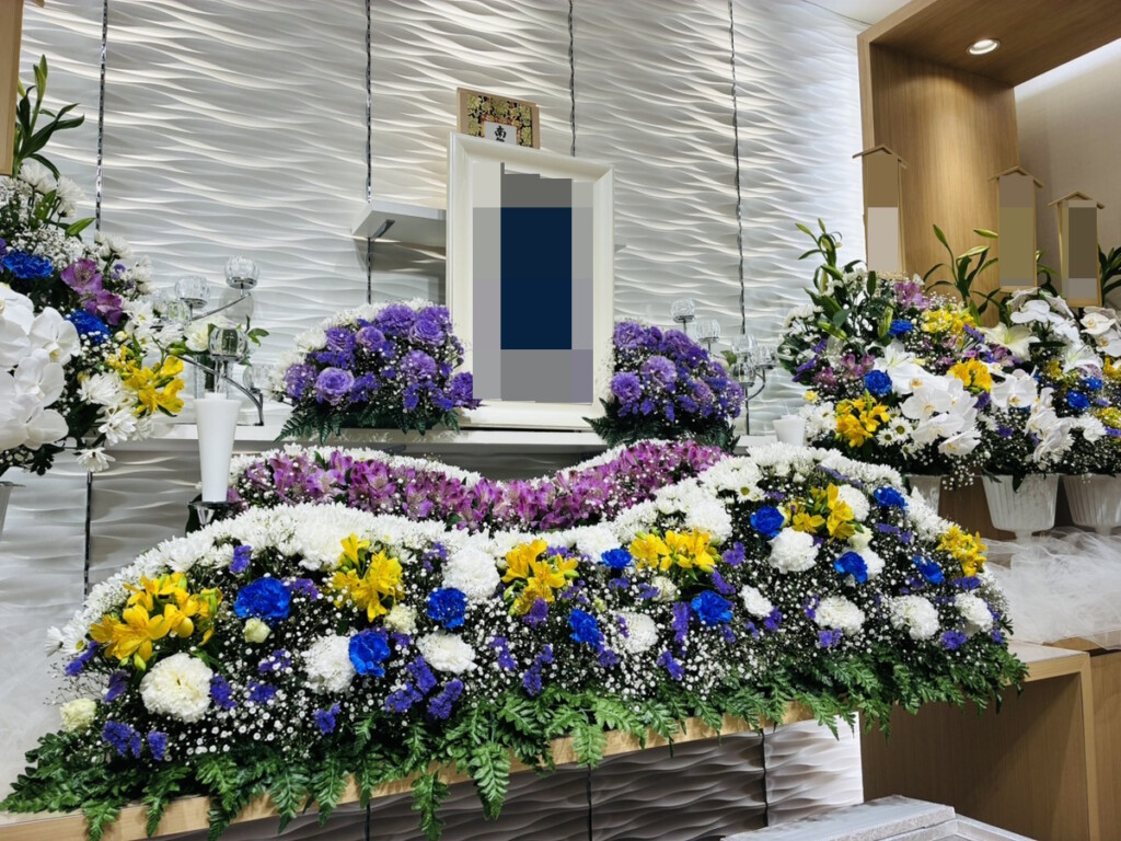 お打ち合わせの途中で、阪神ファンであることをお伺いしましたので、祭壇に黄色の生花を少しお入れすることをご提案させていただきました。