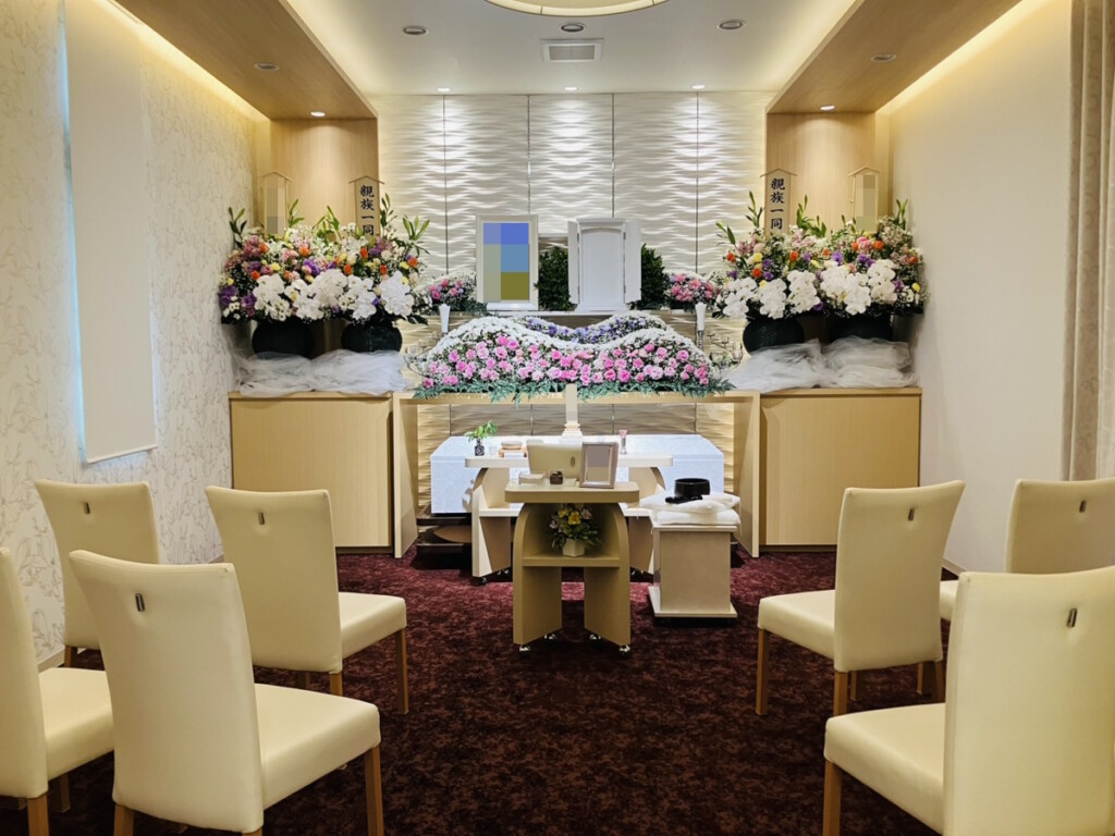当初は堺市立斎場での1日葬を考えていましたが、事前相談にお伺いをすると堺市立斎場より徒歩5分の所に新しく家族葬ホールをオープンされたと聞き式場の見学をさせてもらいました。施設はこじんまりと家族葬を行うにはちょうどいい大きさで、何より設備が豪華になっていました。