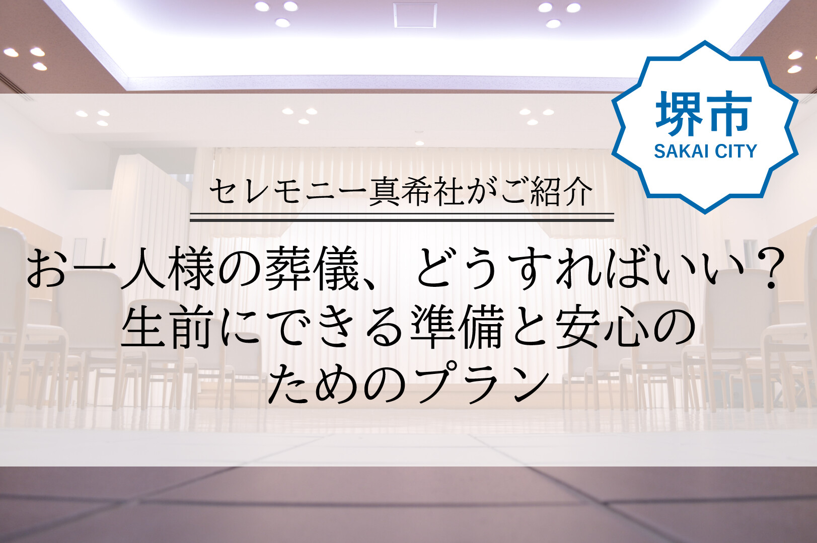 堺市堺区に拠点を置く私たち株式会社セレモニー真希社は、お一人様が安心して最期を迎えていただける葬儀プランをご用意しています。