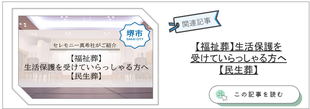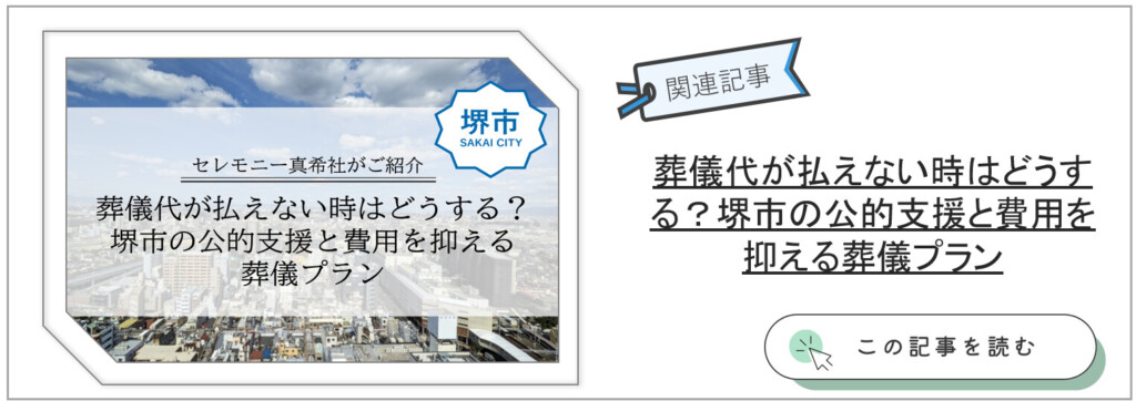 堺市には葬祭扶助制度があり、生活保護を受けている方や経済的に困窮している方が葬儀を行う際に、費用の一部または全部を公費で負担してもらえる制度があります。堺市役所の福祉課や、お住まいの区の保健福祉総合センターで相談することができます。
