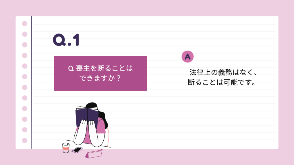 Q. 喪主を断ることはできますか? A. 法律上の義務はなく、断ることは可能です。