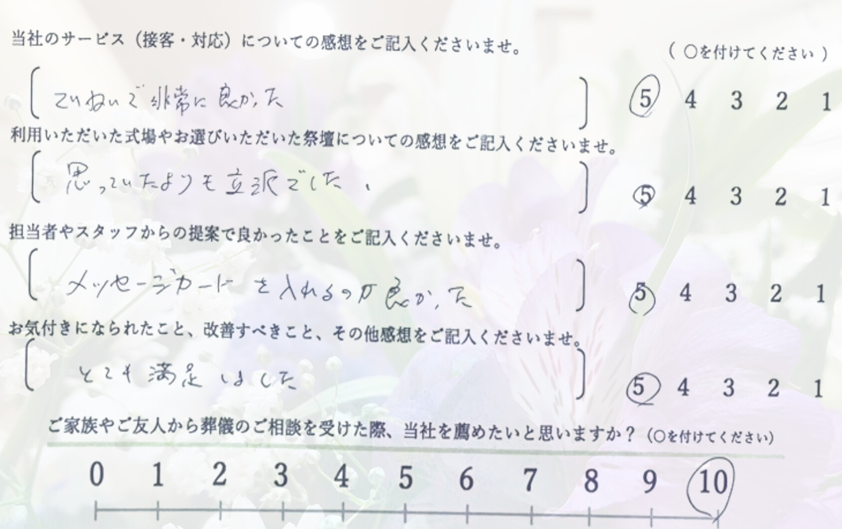 ご家族様に「お願いして良かった」と感じていただけることが、私どもにとって何よりの励みであり、今後の原動力にもなります。